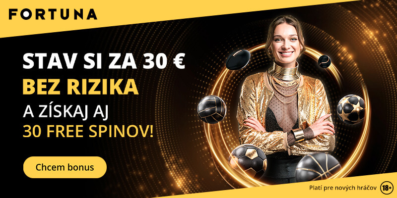 FORTUNA – STAV SI ZA 30 € BEZ RIZIKA Zaregistruj sa a získaj 30 € stávku bez rizika, 30 free spinov a LIVE prenosy na Fortuna TV! |